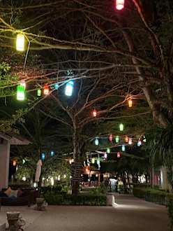 Der Hotelbereich abends.