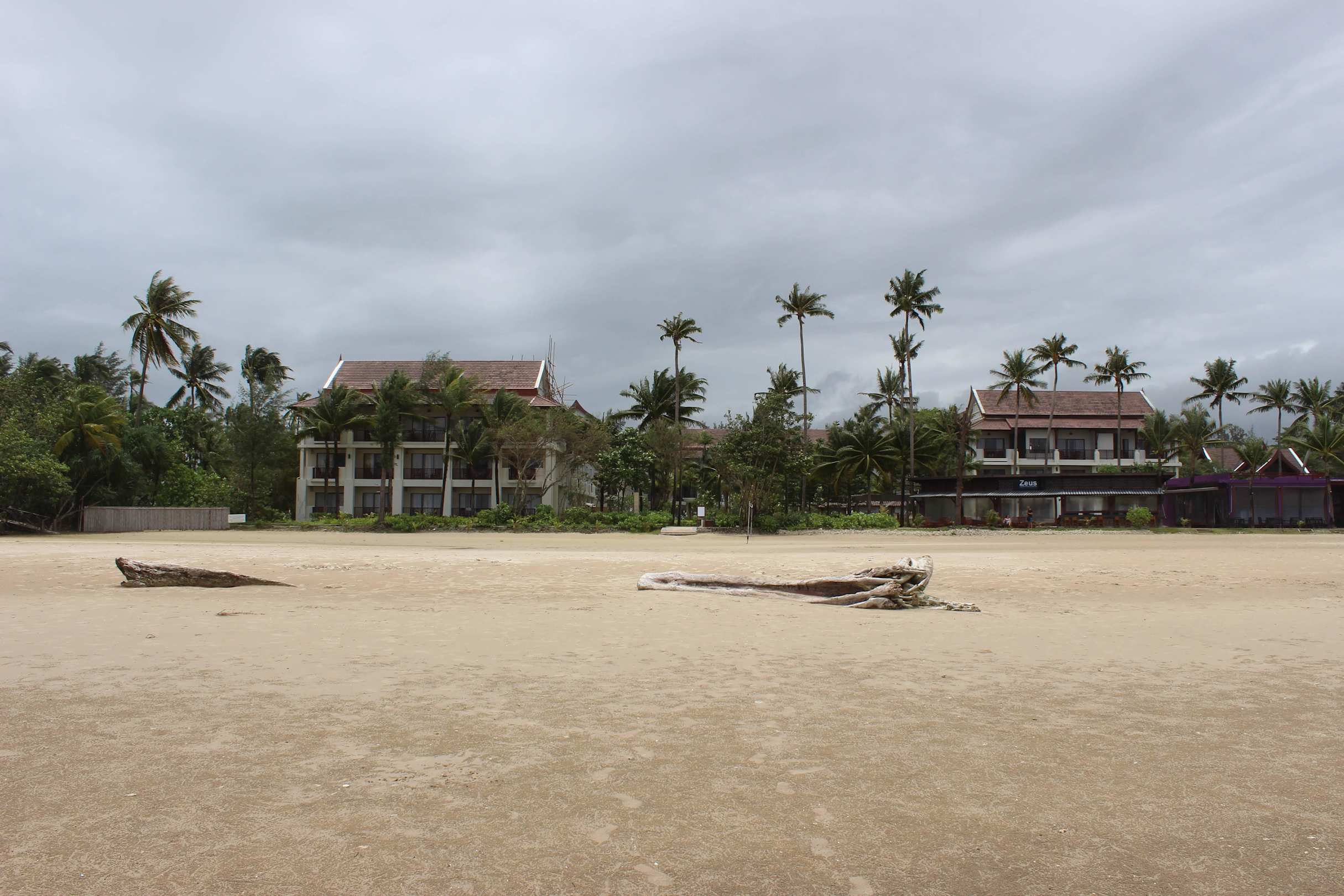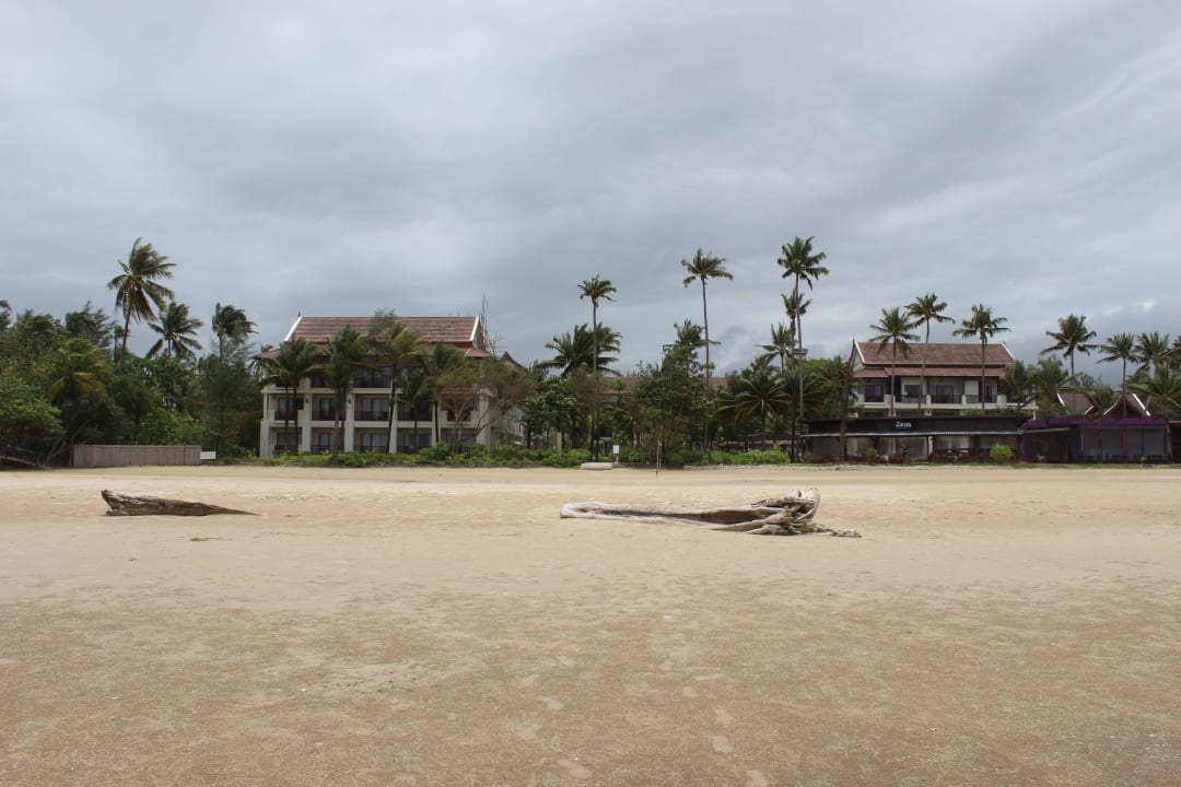 Blik aufs Hotel vom Strand aus