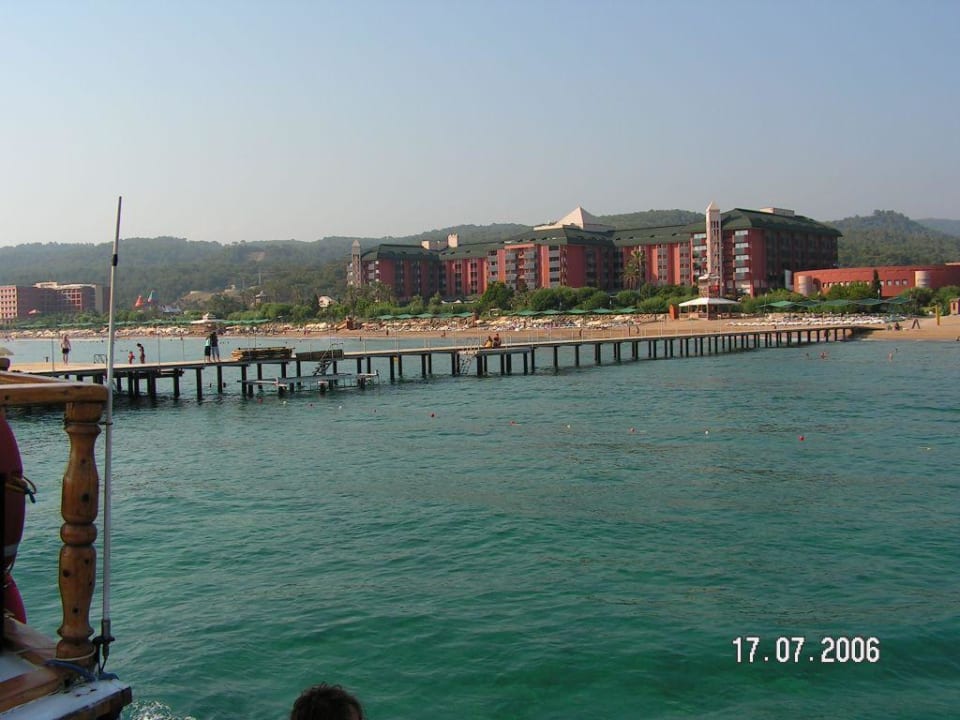 Der Steg mit Hubschrauberlandeplatz und Schiffsanleger, im Hintergrund das JOY Pegasos Resort.