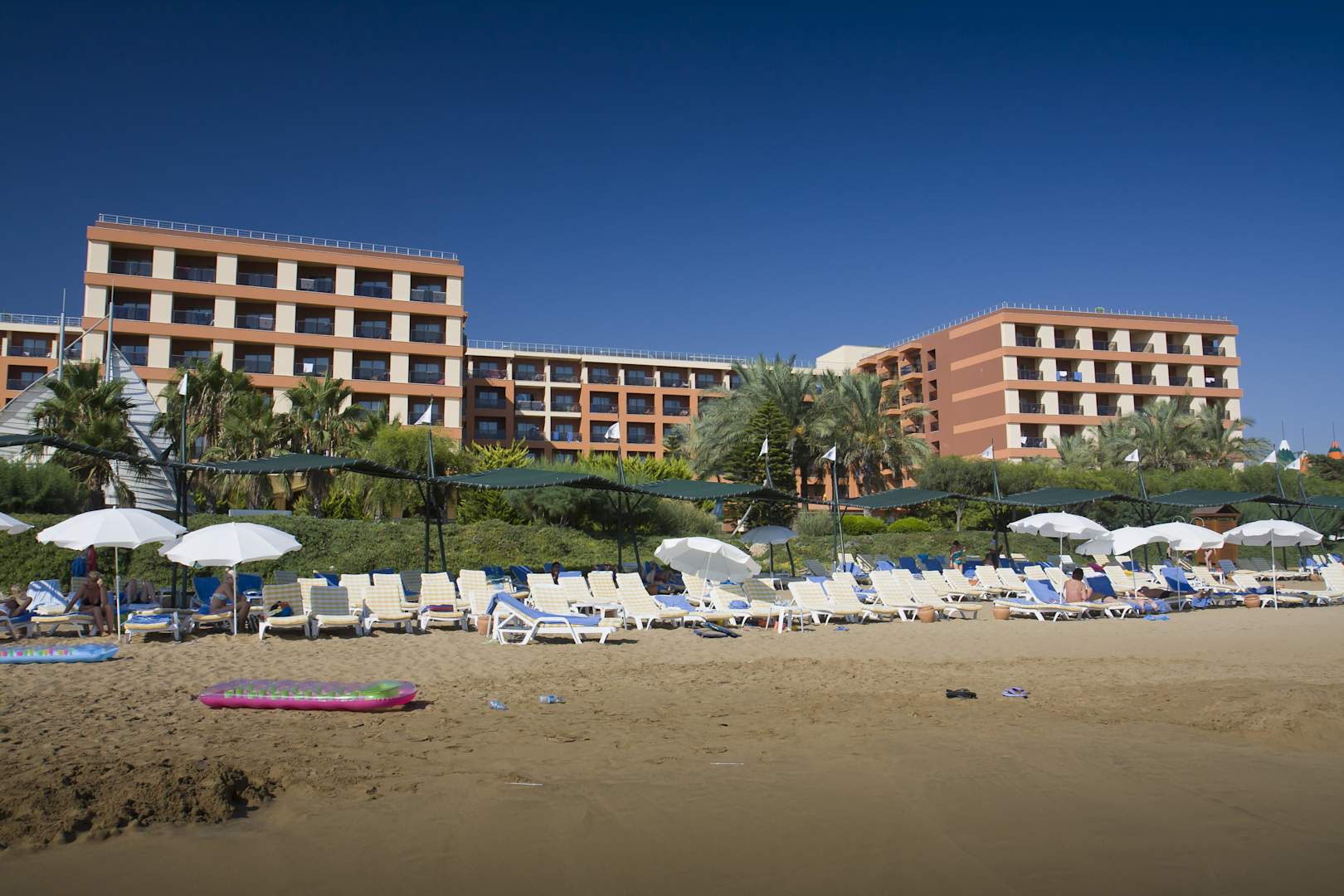 Widok z plaży na hotel AQI Pegasos Resort