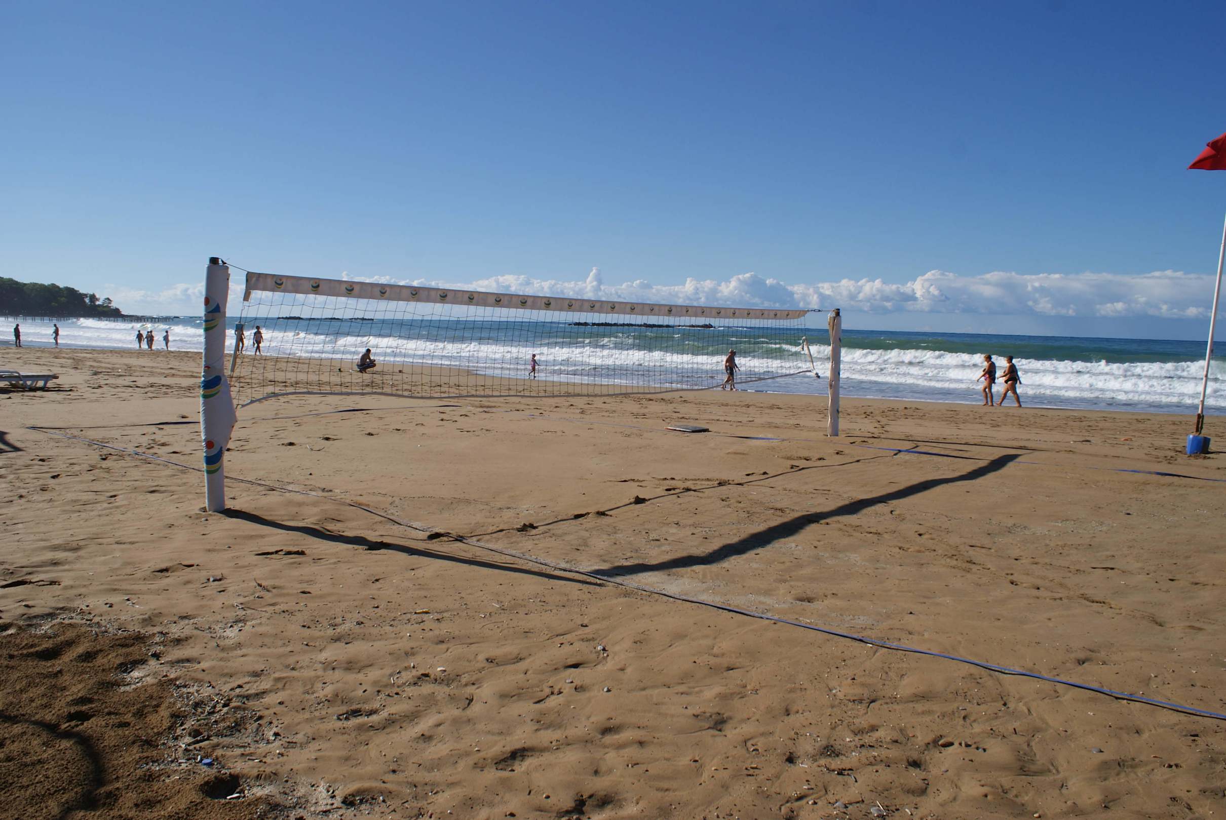 Volleyball-Feld nach nächtlichem Sturm