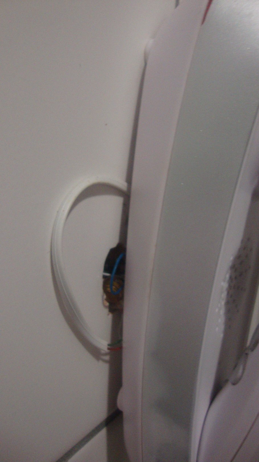 Kabel hängen beim Telefon raus neben der Dusche