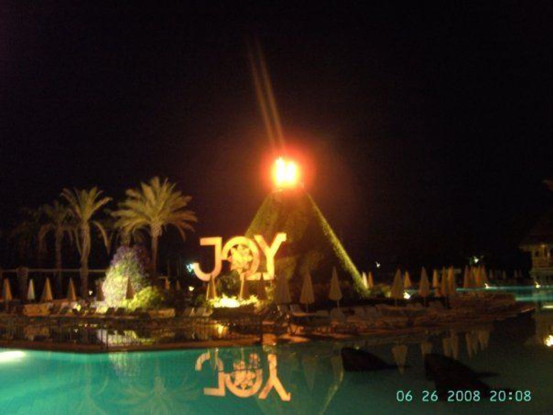 A photo of the sign JOY in the evening :)