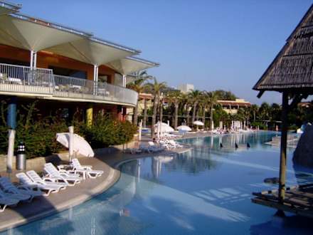 Terrasse mit Blick auf die Poollandschaft
