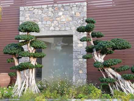 Überall auf dem Hotelgelände sind Bäume. Diese sind rechts neben dem Eingang.