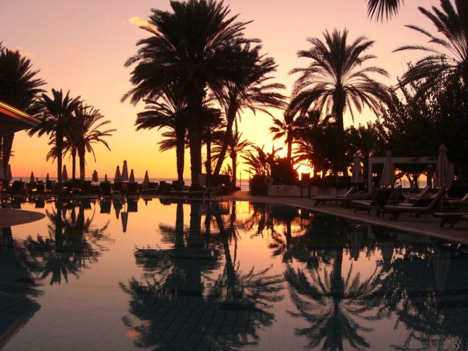 Sonnenuntergang am Strand neben dem Hotel