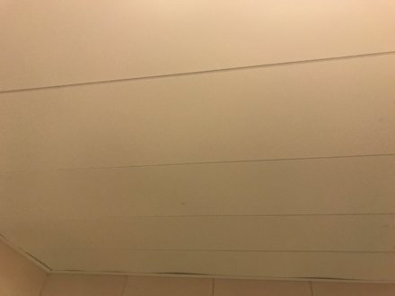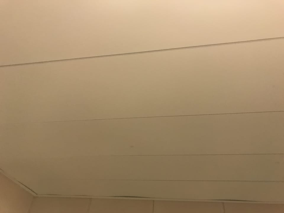 Die Decke des renovierungsbedürftigen Bads.
