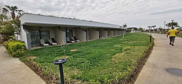 Ungepflegter Rasen vor den Sunset Zimmern