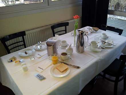 Nur 1 Gast am Tisch sonst nur gebrauchtes Geschirr