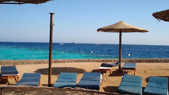 Strand mit Liegen