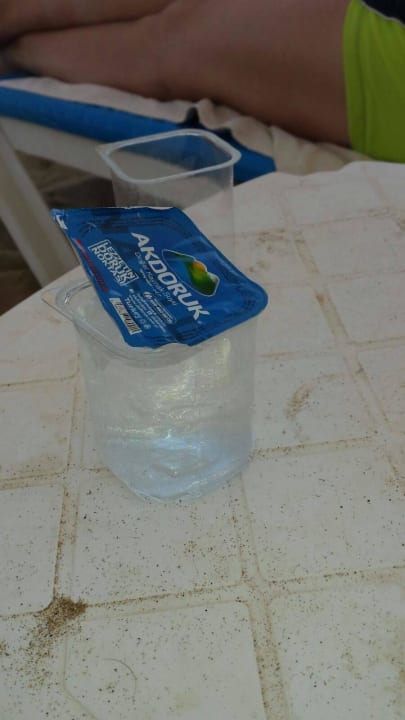 auch so eine Sparmaßnahme. Statt 0,5 Liter Wasserflaschen gibt es nur noch diese Trinkpäckchen