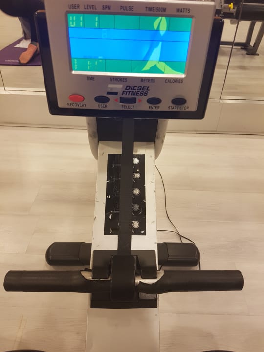 Kaputtes Display beim Rudergerät, abgenagte Gummierung am Griff, Pedale war auch kaputt