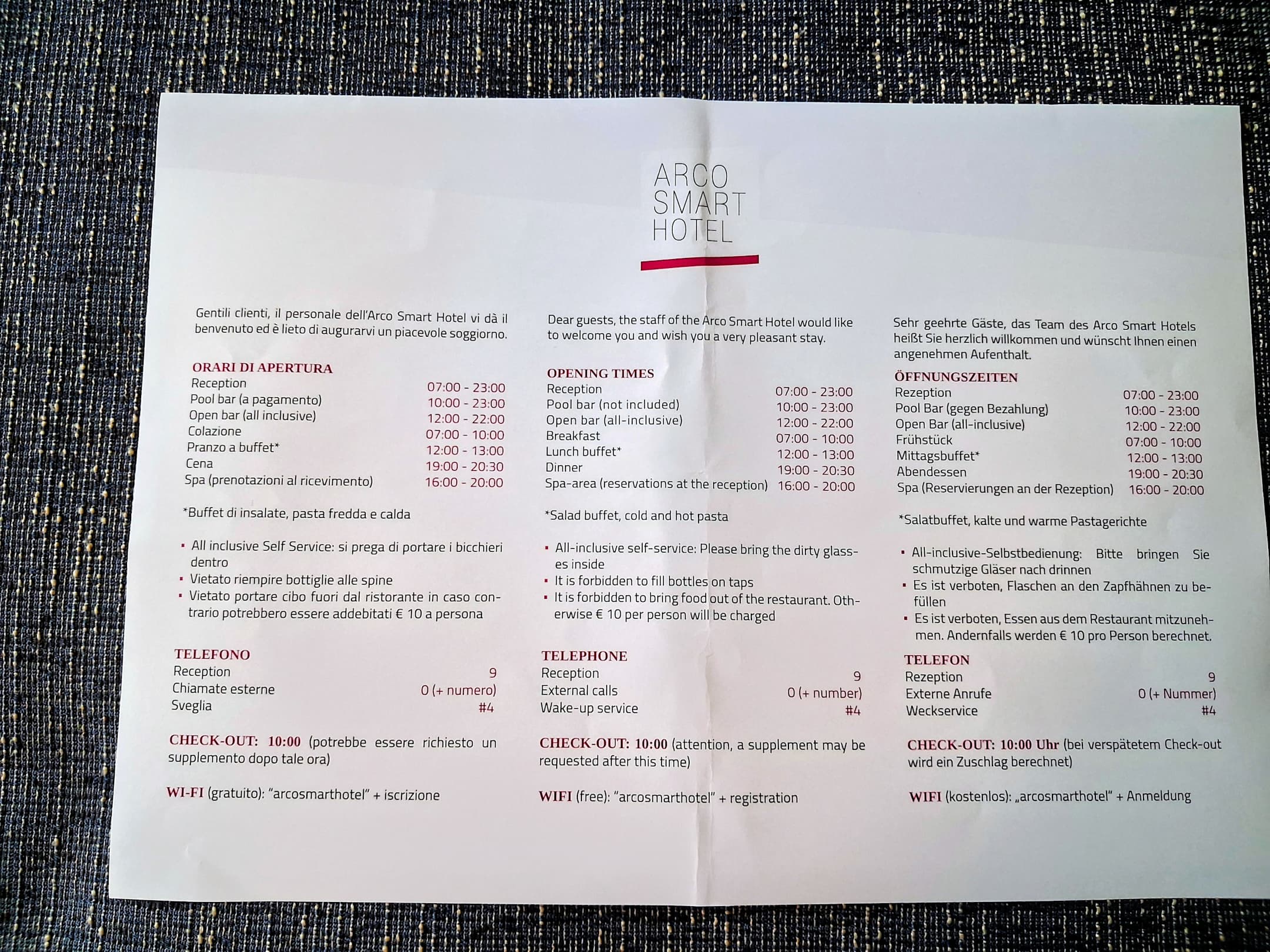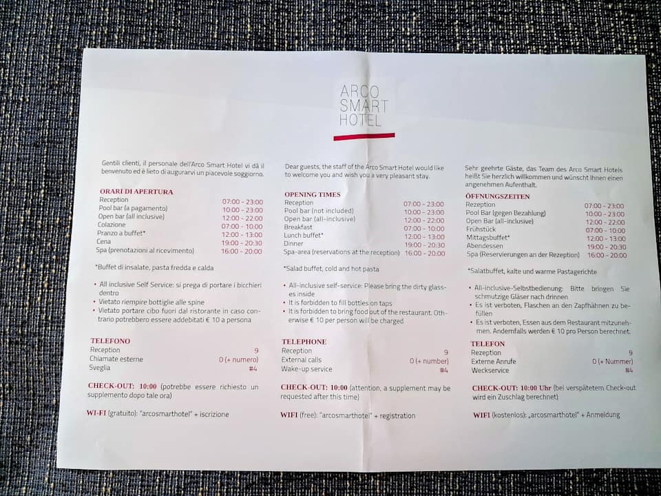 Infozettel vom Hotel,bekommt man bei der Anreise.
