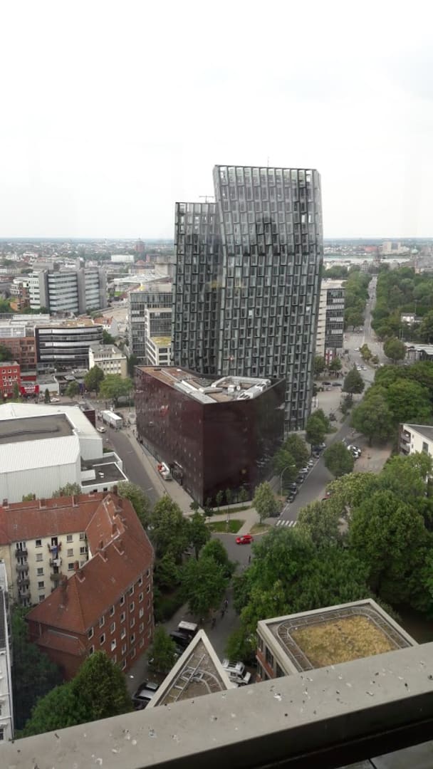 Ansicht von oben. Hinter dem Hotel befinden sich die tanzenden Türme