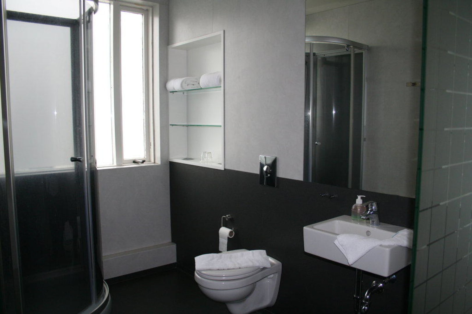 Schön geräumig, viele Ablagemöglichkeiten. Etwas gewöhnungsbedüftig: die große Glastür