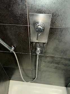 Kaputte Dusche mit Kalk