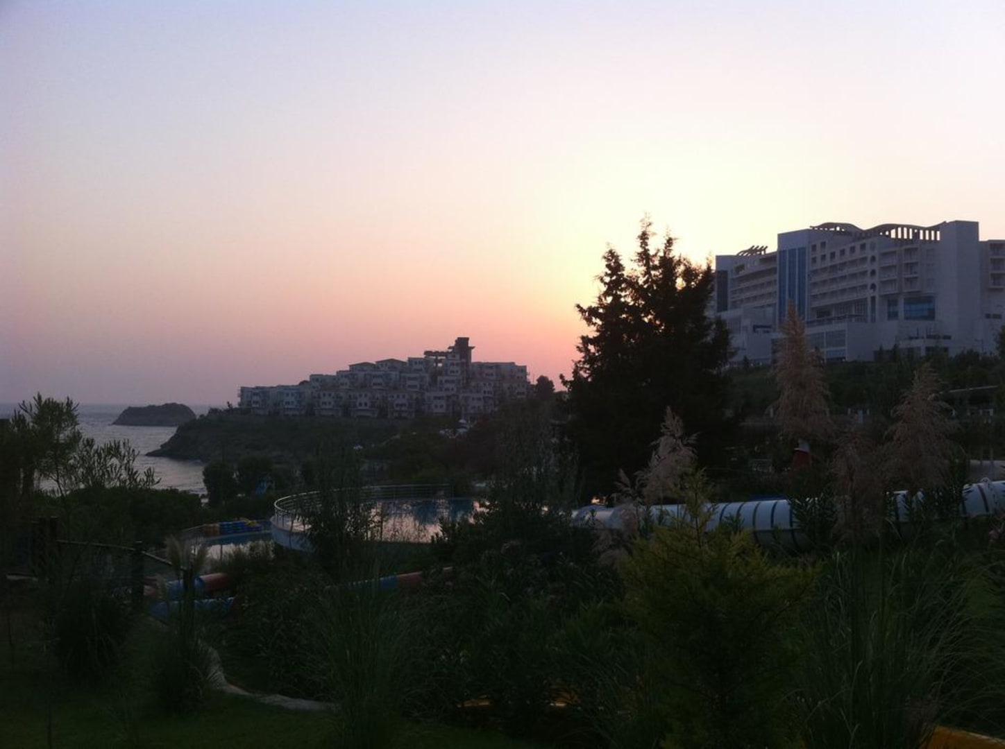 Sonnenuntergang bei den Rutschbahnen Aria Claros Beach & Spa Resort