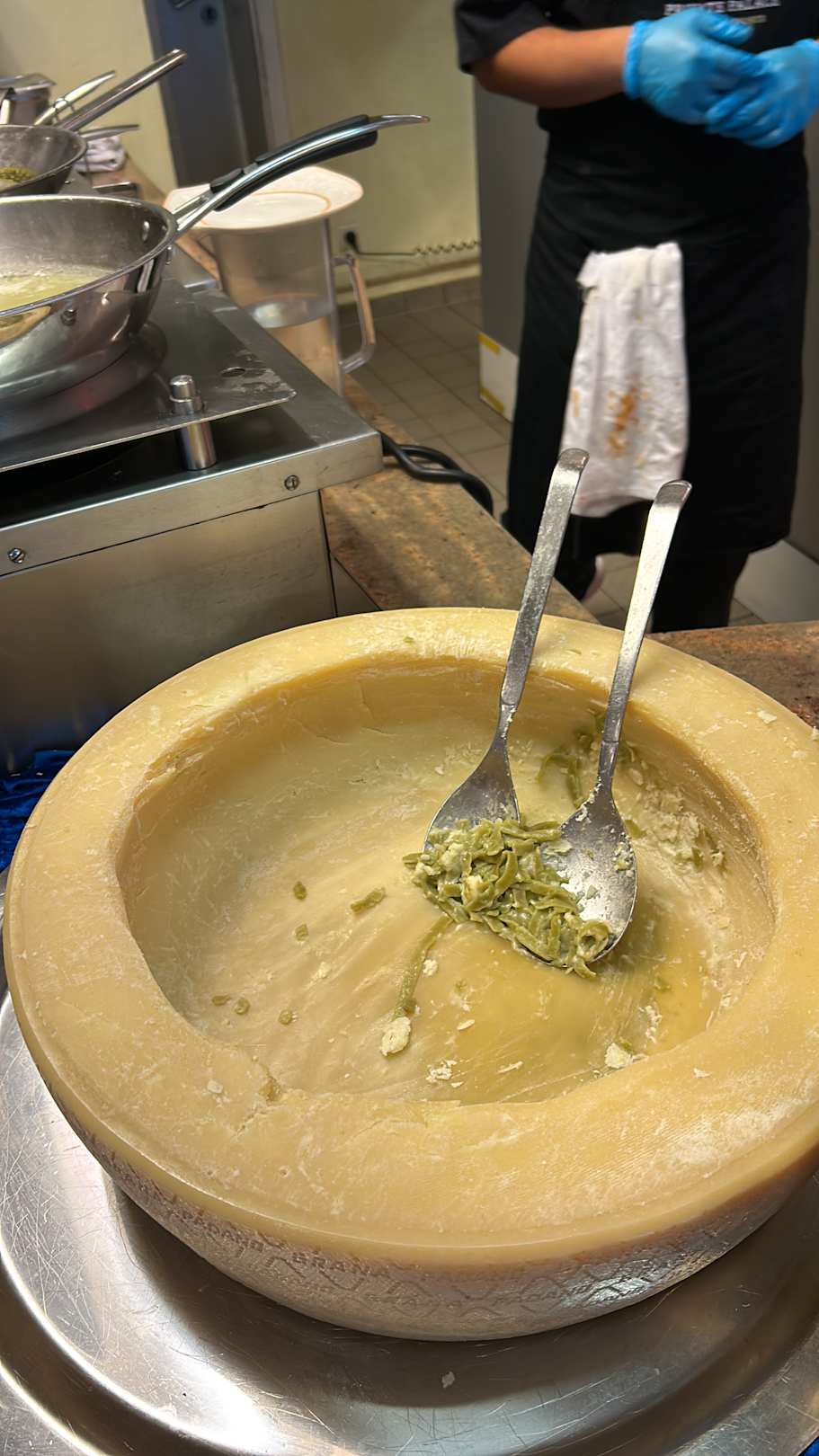 Hier gibt es Nudeln aus den Parmesan Laib