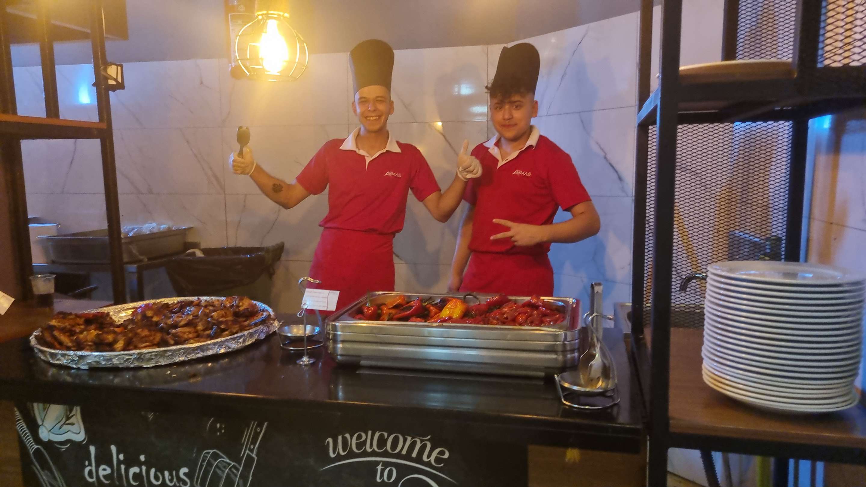 Die Mitarbeiter im Restaurant an der Fleischtheke