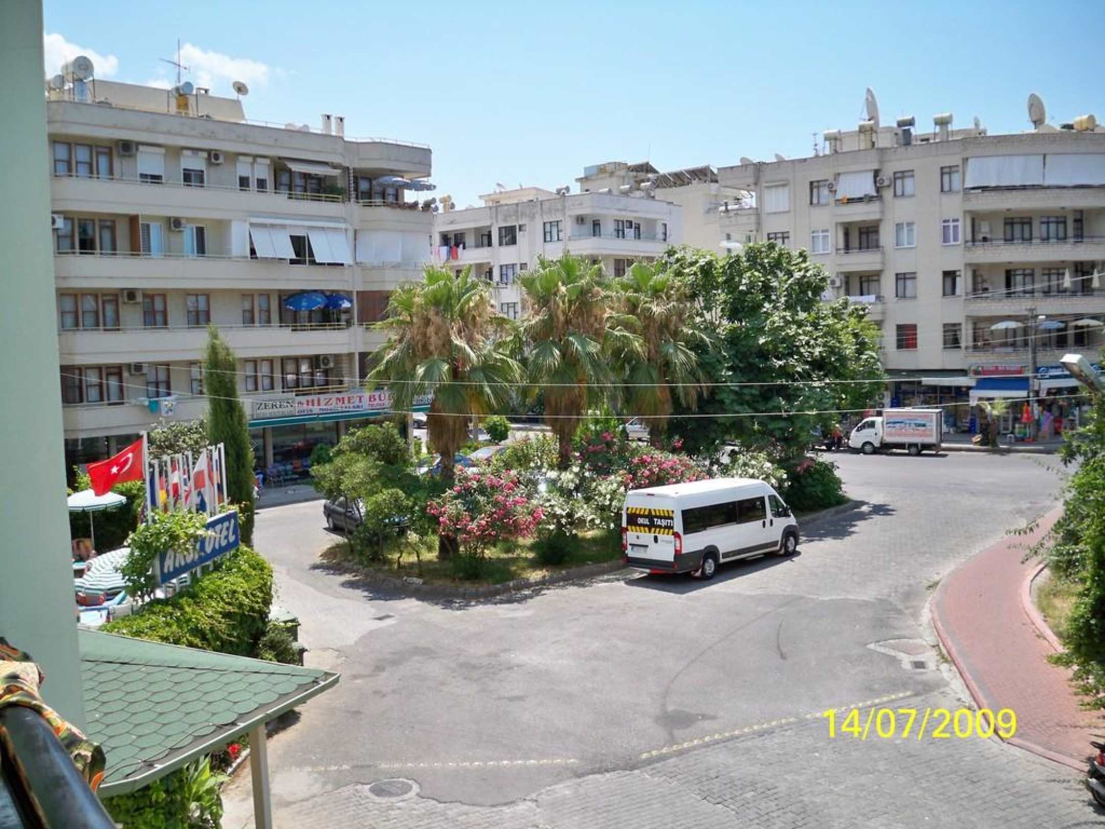 widok z pokoju na spokojne i mało ruchliwe rondo