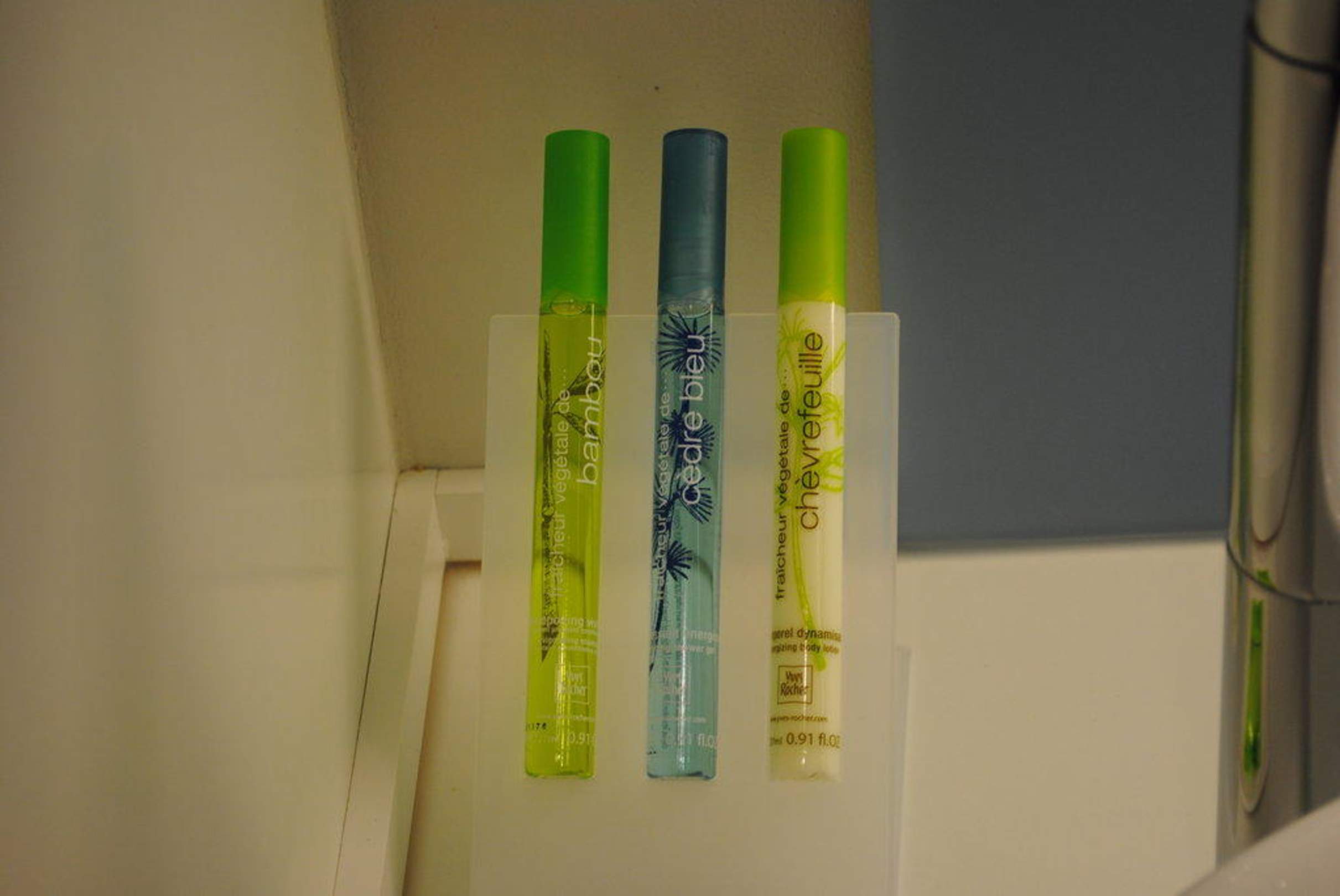 Pflegeprodukte von Yves Rocher auf dem Zimmer