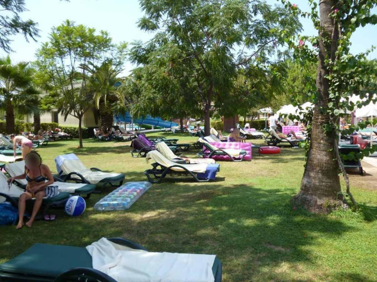 Liegewiese mit vielen Schattenspendern