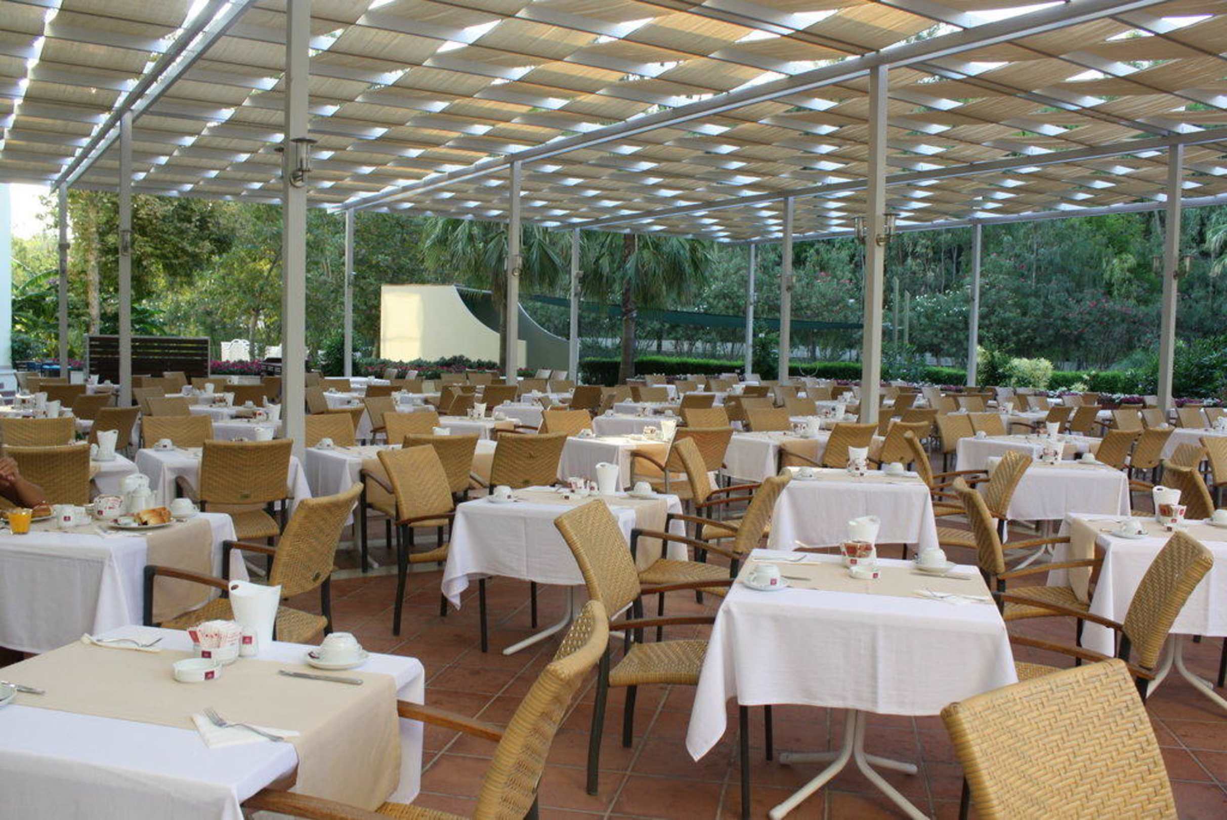 Tische sind fürs Frühstück gedeckt