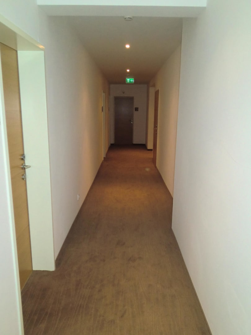 Hotelgang links Zimmertür