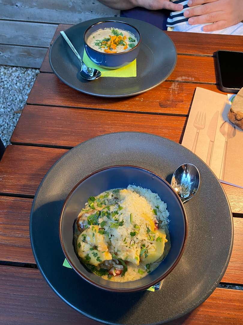 Abendessen im Biergartenbereich des Restaurants