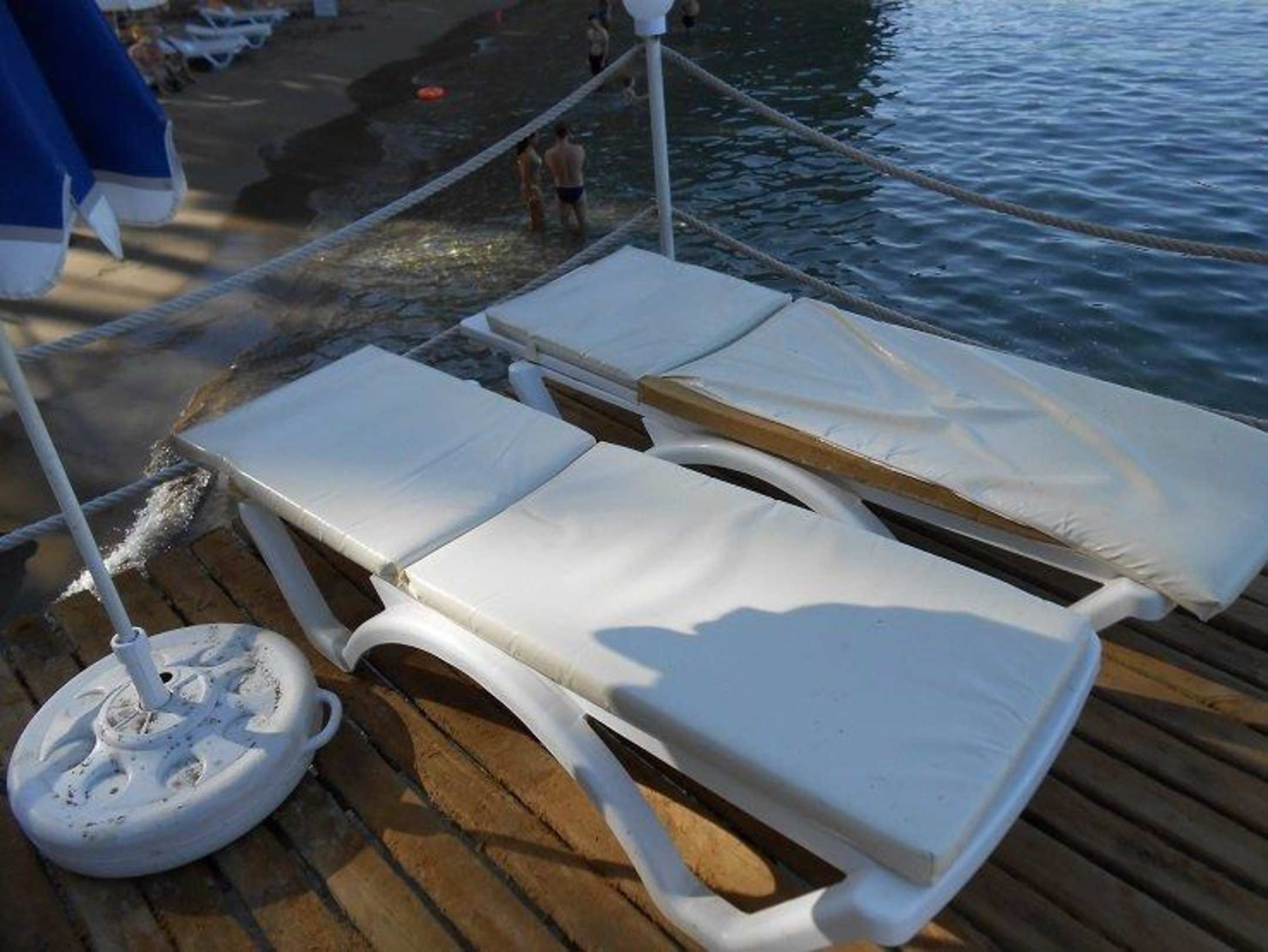 Pocięte materace na pomoście