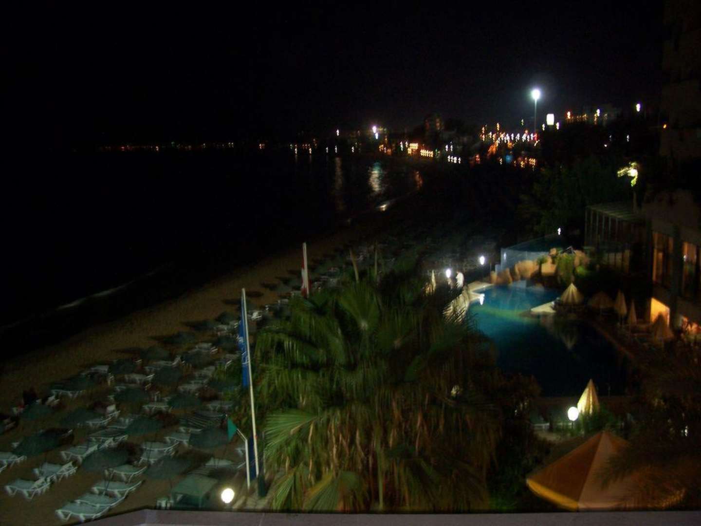 Abends wieder von der Wendeltreppe aus.Auch im Dunkeln hat man einen herrlichen Ausblick auf den schönen Strand und Pool.