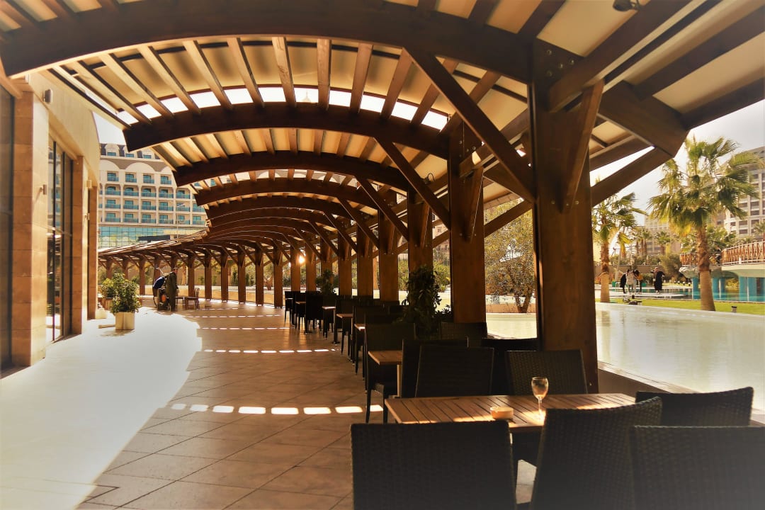 Laubengang auf der Poolseite vom Hotel Aska Lara