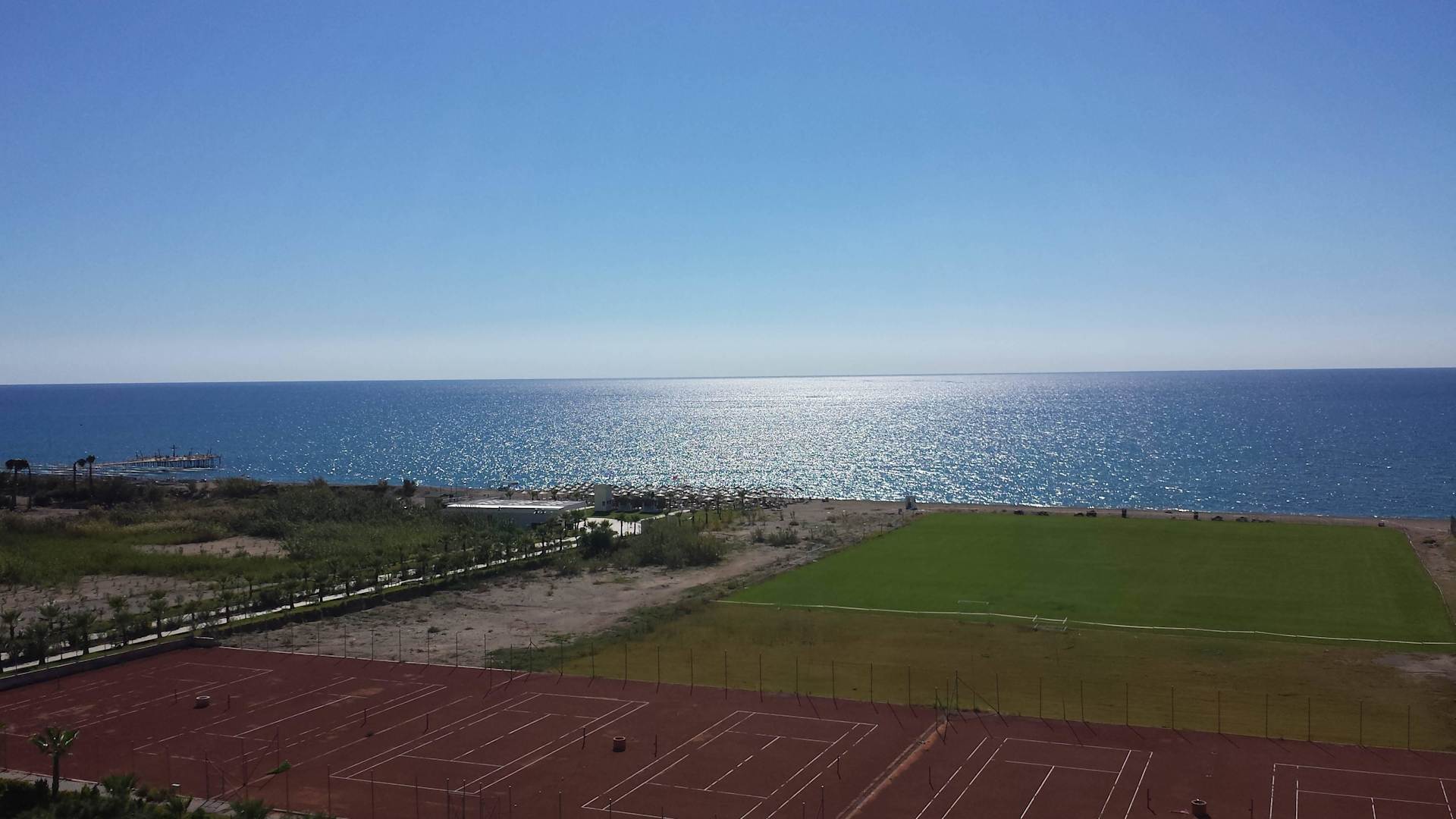 Blick vom 6. Stock zum Strand