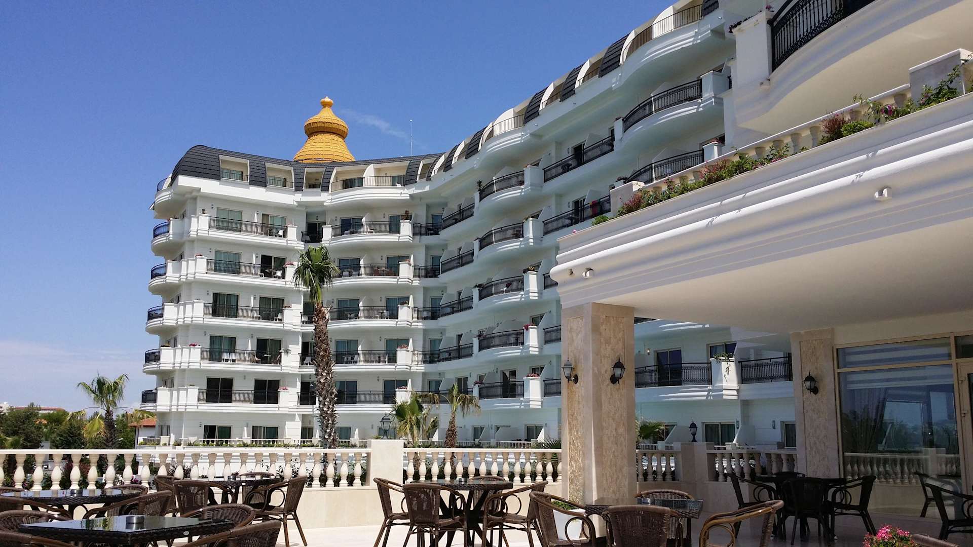Blick von Terrasse zu einem Teil des Hotels