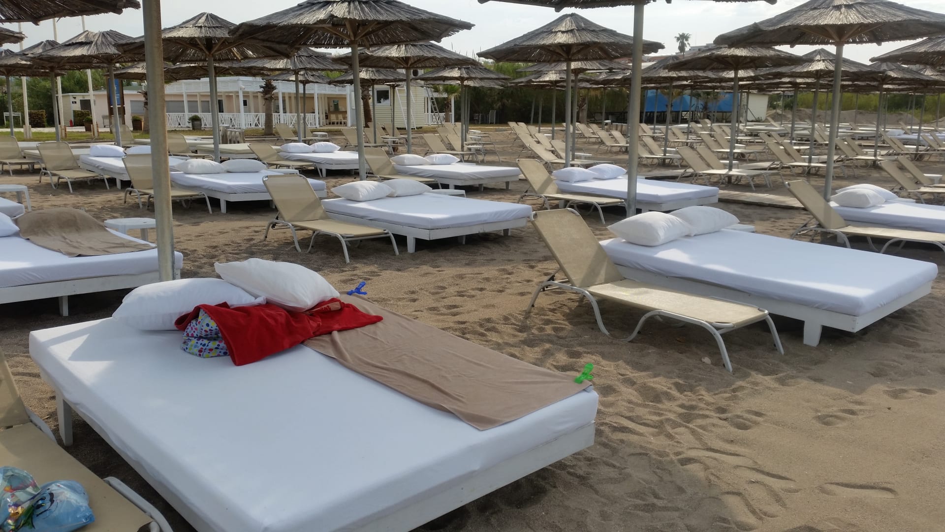 StrandSuper bequeme Betten am Strand. Die Kopfkissen wurden jeden Morgen frisch bezogen.