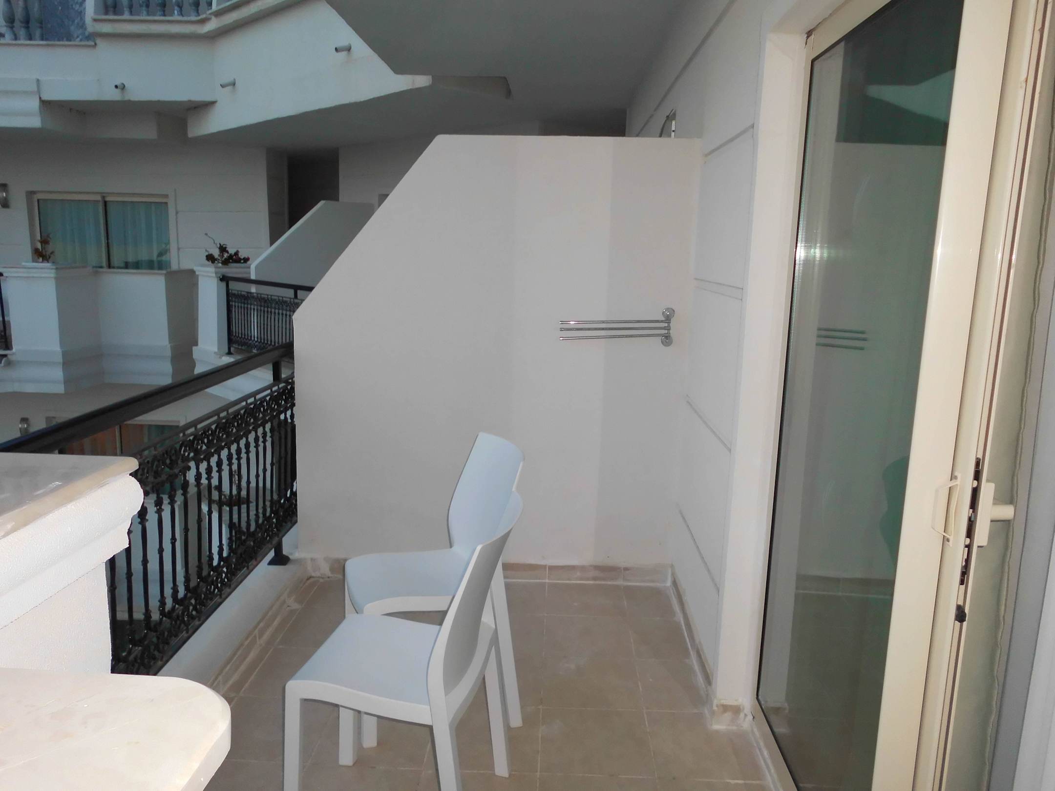 Der kleinere Balkon 2 mit Poolblick