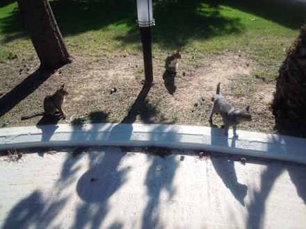 Süße Katzen in der Gartenanlage