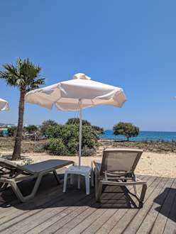 Ausblick von den Liegen Richtung Strand