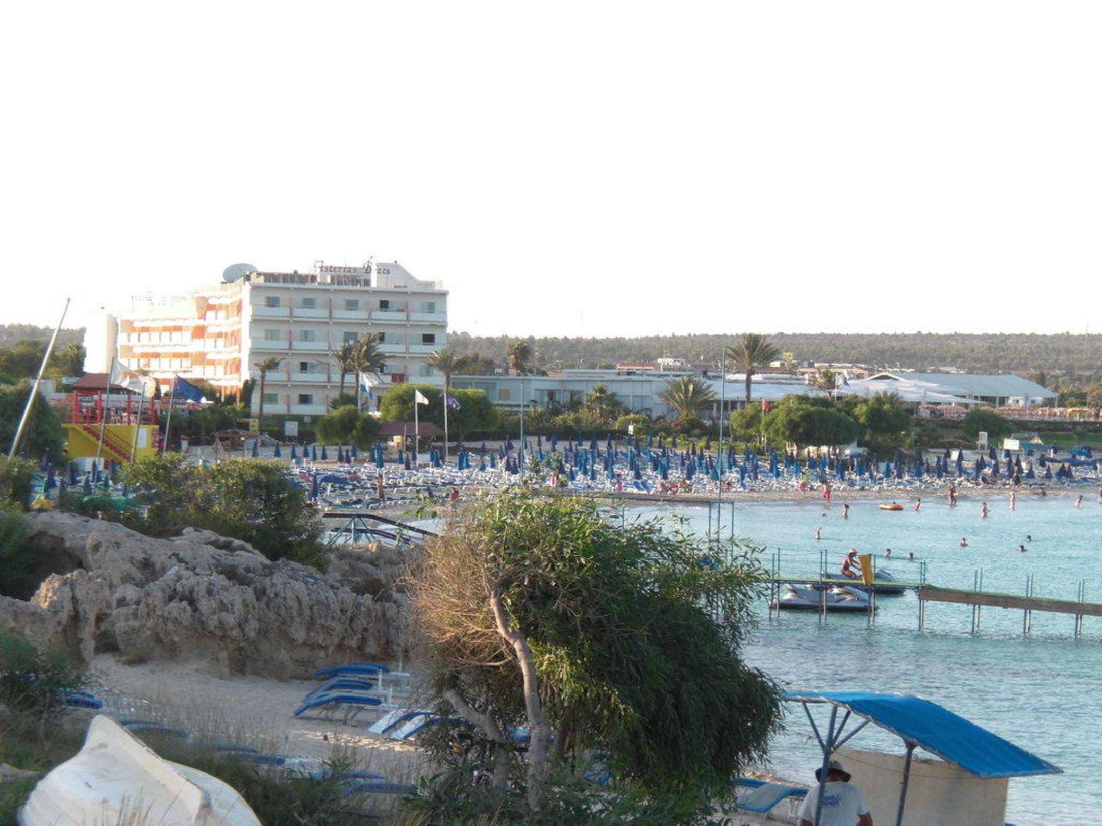 Vista panoramica sull'hotel Asterias BeachDalla foto si può vedere l'hotel con la sua spiaggia e la zona dedicata agli sport acquatici.