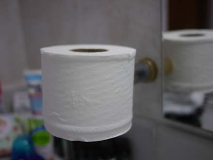 zweiter Zahnputzbecherhalter, als Toilettenpapierhalter umfunktioniert
