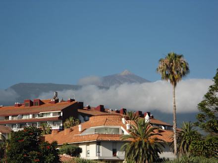 Ausblik vom Eingang des Hotels zum TeideBlick vom Hotelleingang zum Teide über den Ortsteil LA Paz