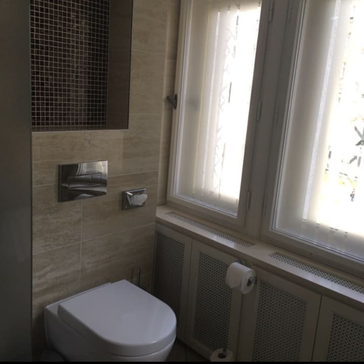 Links (nicht sichtbar) große begehbare Dusche