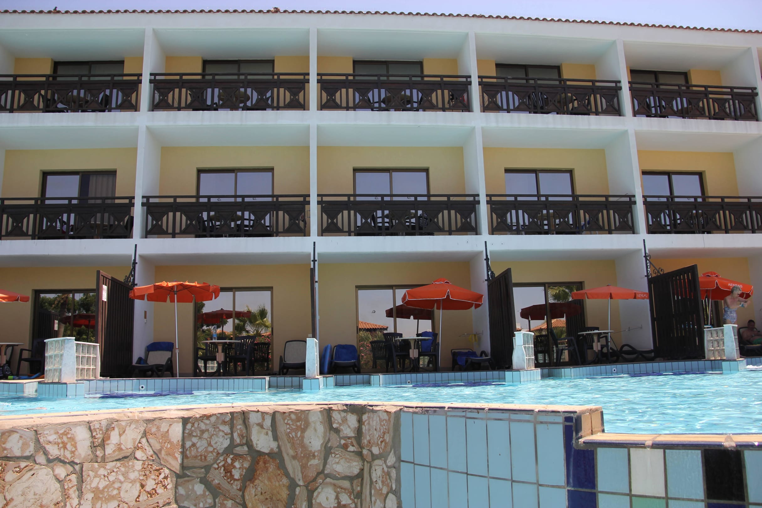 Hauptgebäude / Zimmer mit Poolblick Die unteren Zimmer verfügen über einen eigenen Poolzugang mit einen jeweils eigenen Outdoor Whirlpool.