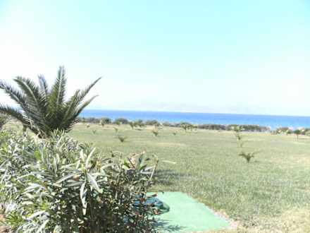 Weg zwischen Hotel und Strand mit Palmenwieseden Weg zwischen Hotel und Strand zäumt eine Palmenwiese.