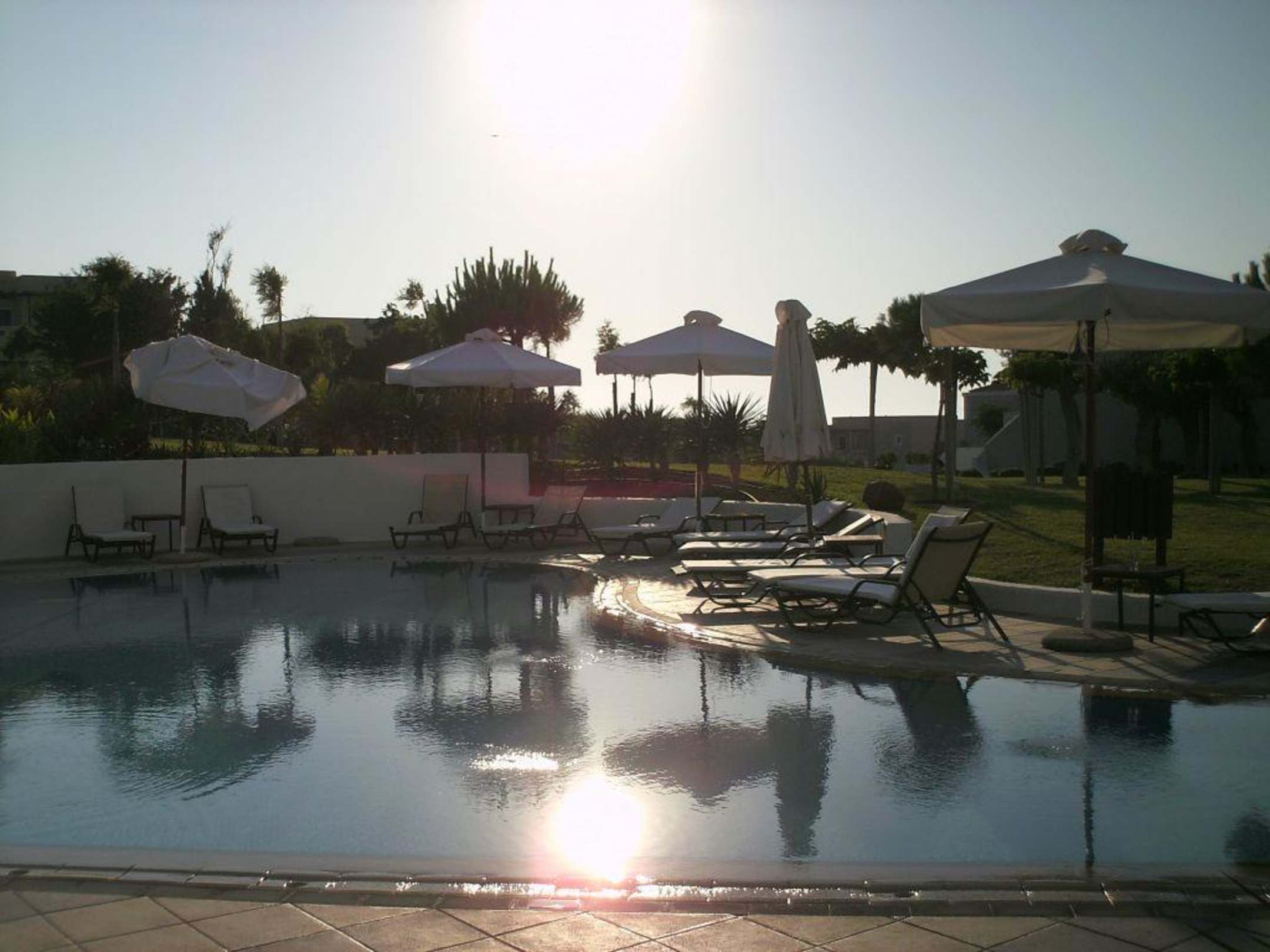 Einer der Pools vor SonnenuntergangVor dem abendlichen Aufräumen durch die Mitarbeiter des Hotels