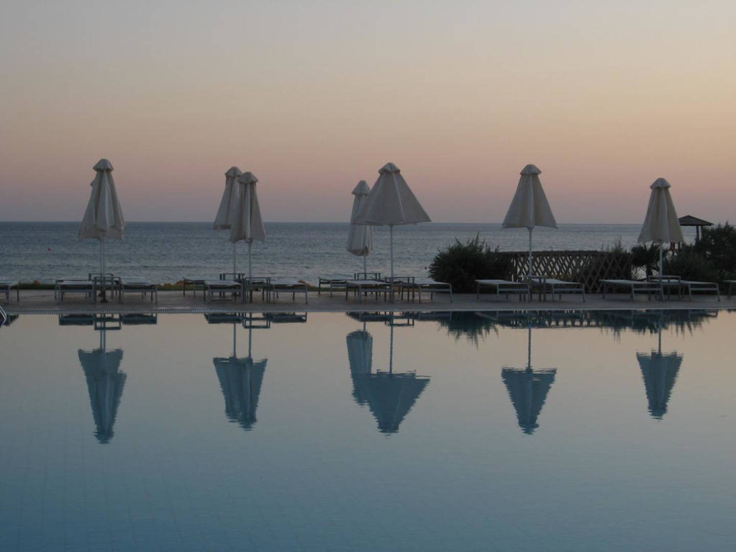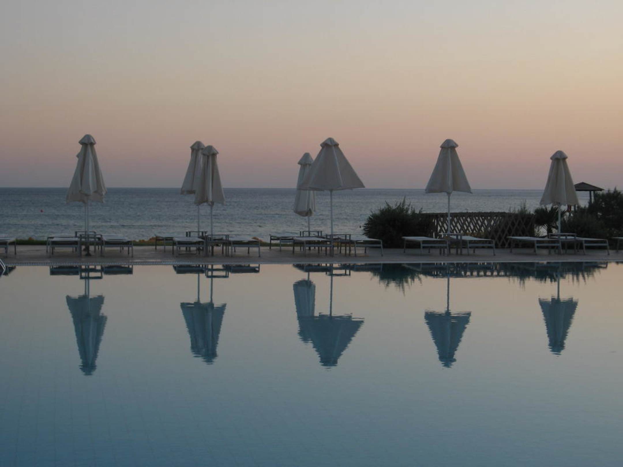 Poolambiente bei Sonnenuntergang