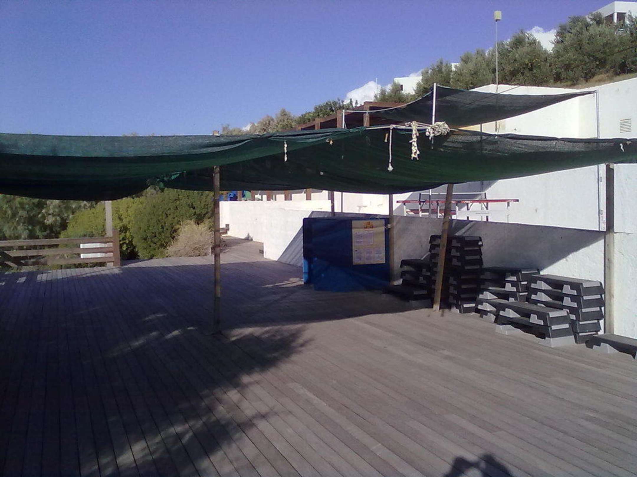 Sportfläche für FitnessSportfläche für das Fitnessprogramm, mit Plane als Sonnenschutz.
