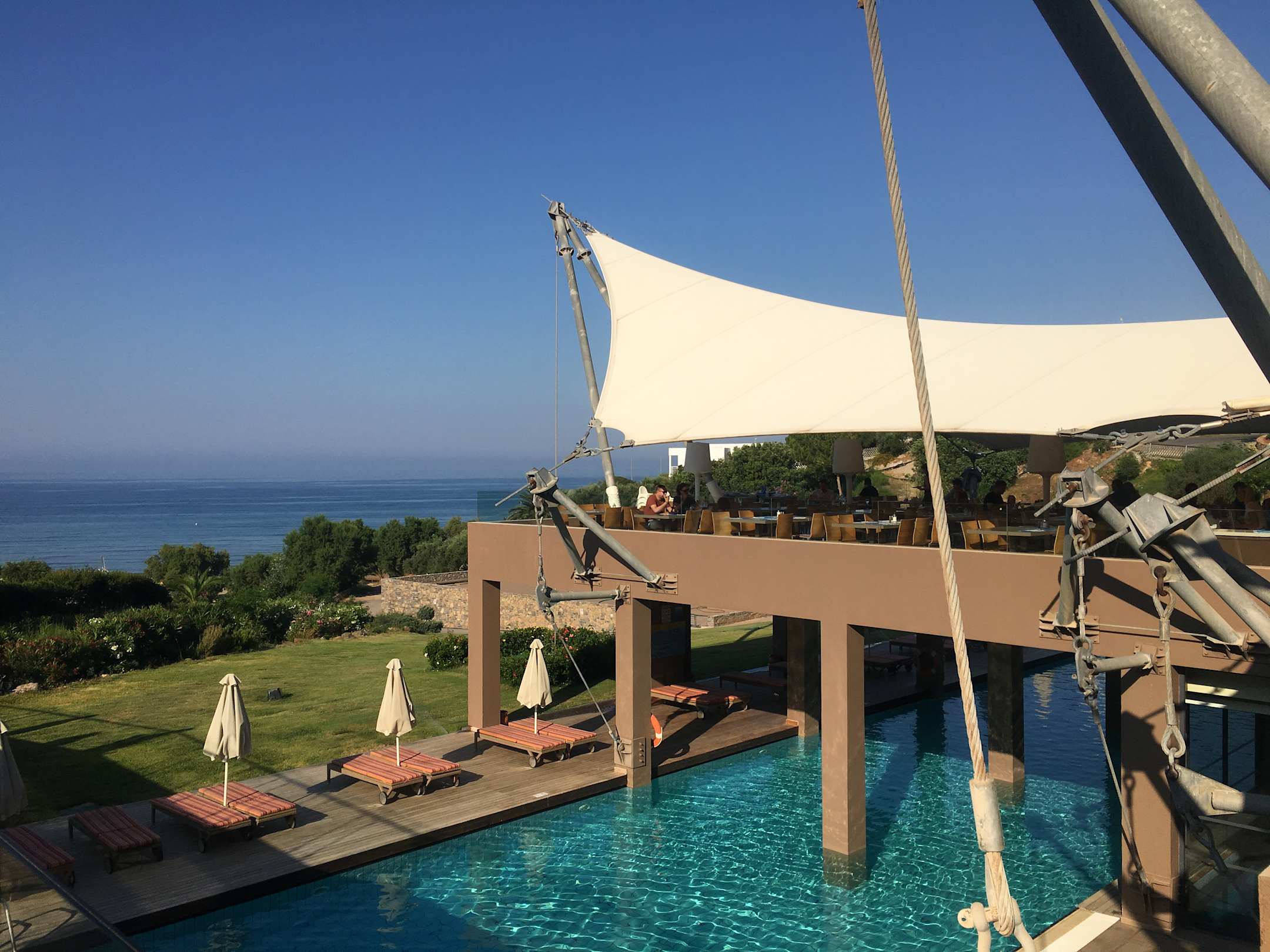 Blick auf Terrasse vom Restaurant.