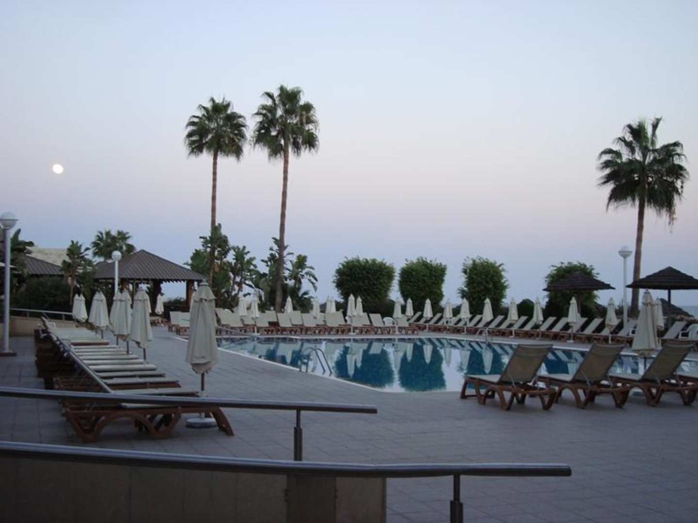 Die Poolanlage in der Abenddämmerung