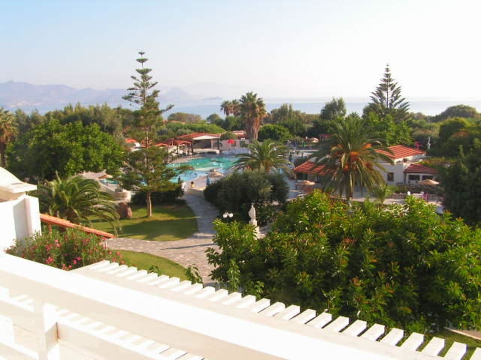 Das ist die Aussicht vom Balkon der 2 Etage zum Hotelpool + Meer